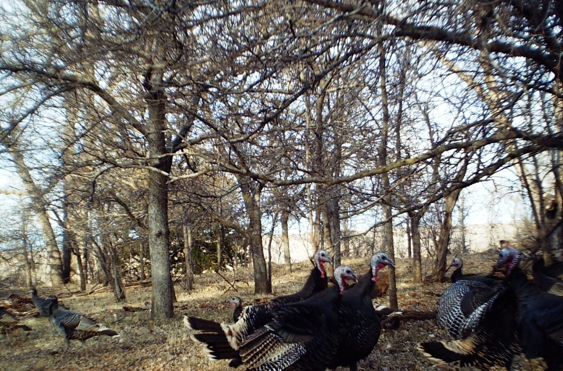 The ranch provides an ideal habitat for the Rio Grande wild turkey species, as there are ample roosting areas, a river, multiple creeks, and miles of rolling prairies covered with sage and mesquite. We have winter wheat fields throughout the ranch. There are numerous corn feeders throughout the ranch to hold birds close to hunting areas.
